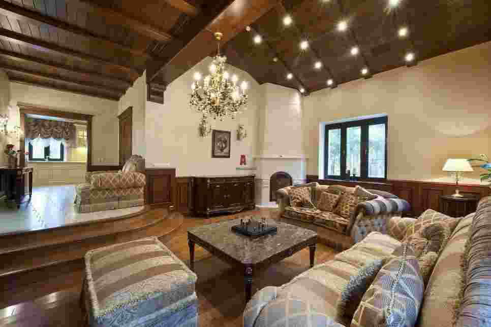 Чтобы создать теплую, уютную атмосферу в вашем коттедже, следует подключить в каждой комнате несколько источников света – потолочные, настенные и напольные светильники, но не яркие, а несколько приглушенные.
