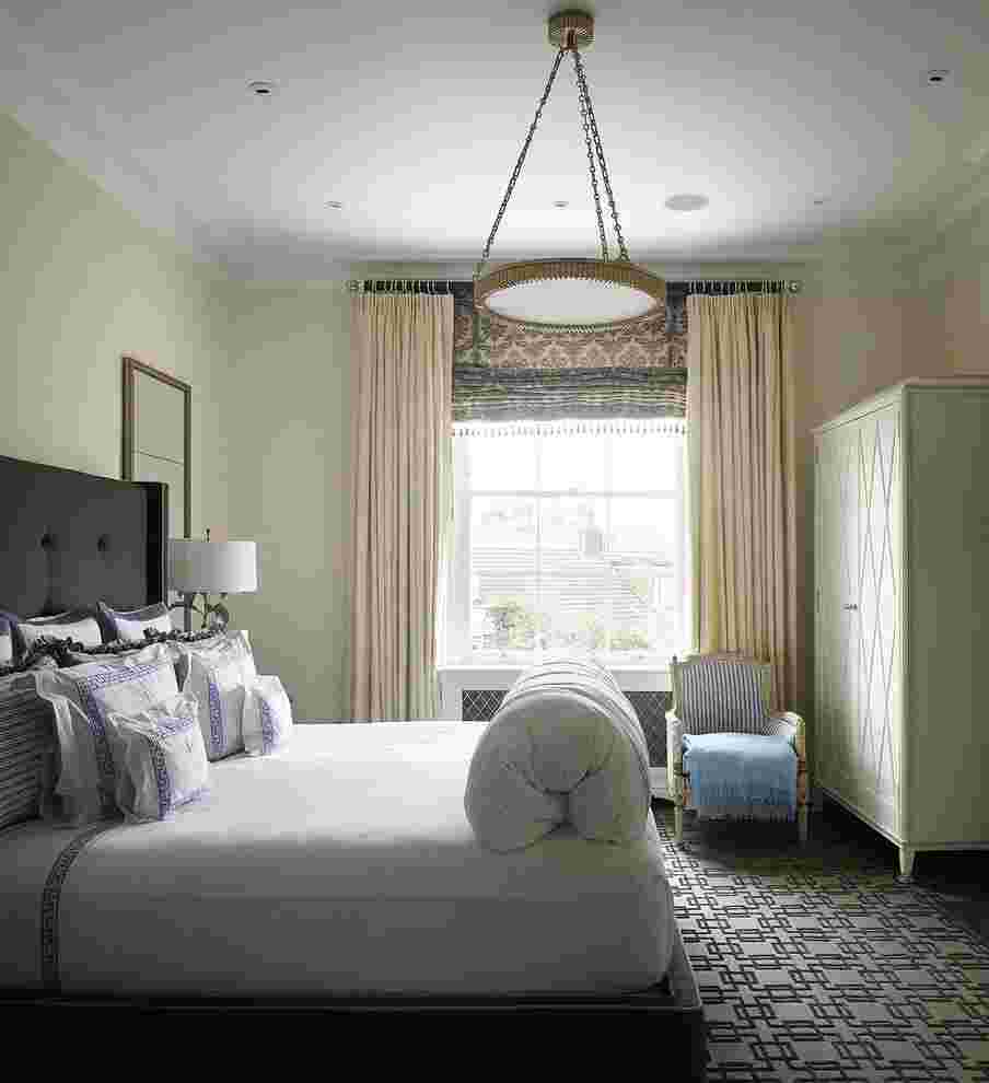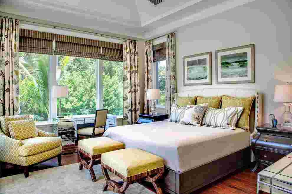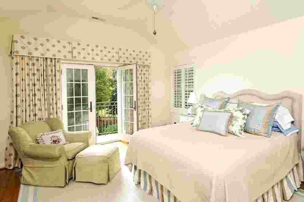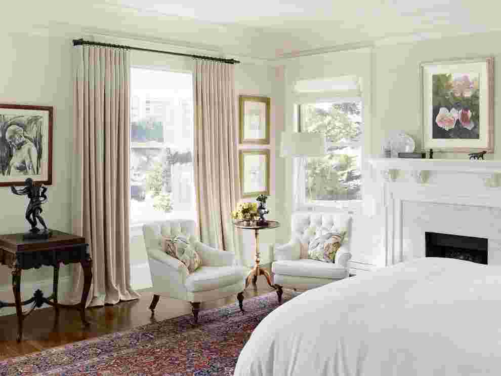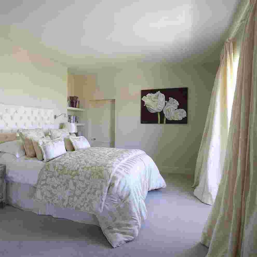 Если главным цветовым пятном служит кровать, то окна не должны выделяться: