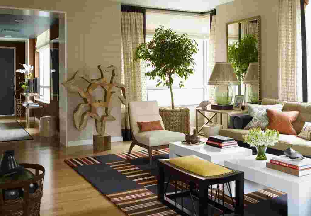 Она в первую очередь ассоциируется с простором, где можно принимать родных и друзей, устраивать застолья, танцевать. Это одно из немногих помещений, где мягкость и теплоту могут придать не только мелочи, но и массивные детали: огромное зеркало, облаченное в широкую раму; большие картины; высокие напольные вазы с буйством цвета; шикарный камин; увесистая хрустальная люстра. В конце концов, купите кресло-качалку или бескаркасное кресло-трансформер «Farla Lounge», чтобы приехавшей погостить маме было удобно смотреть телевизор.