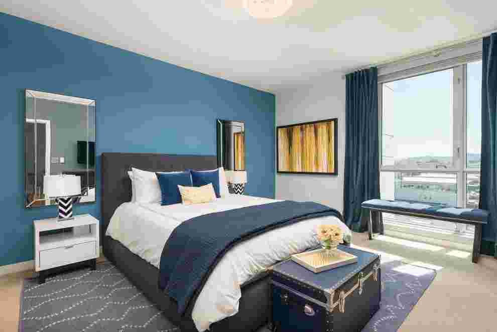 Шторы, покрывало и декоративные подушки придадут спальне уюта и подчеркнут созданный стиль интерьера. Они выполняются в единой цветовой гамме с основной палитрой. В комнате, где присутствует всего один или два схожих оттенка, текстиль может иметь более яркие краски, повторяющиеся в других предметах интерьера.