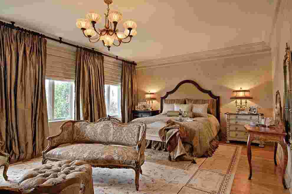 Изящество – девиз данного стиля. Значит вопрос, какой длины должны быть шторы в спальне можно решить по-разному: